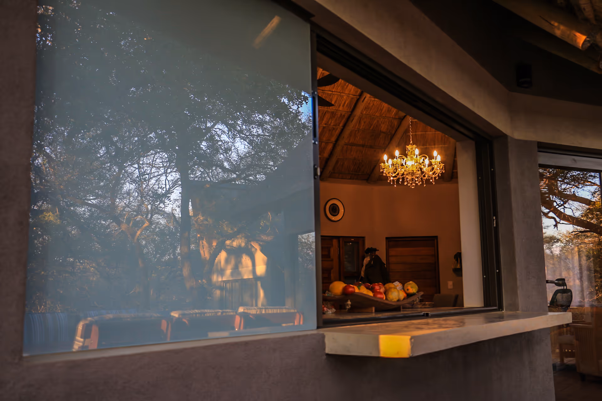 A modern thatch home tucked under boer bean trees in the Leadwood Big Game Estate.
